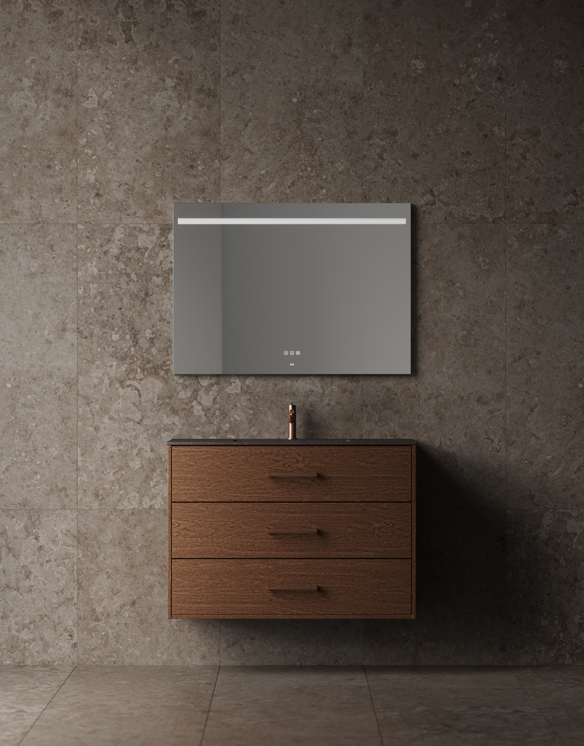 Terra Solid 100 Dark Oak -viilussa, peilinä Touch 100. Alvaret Earth 60x60.