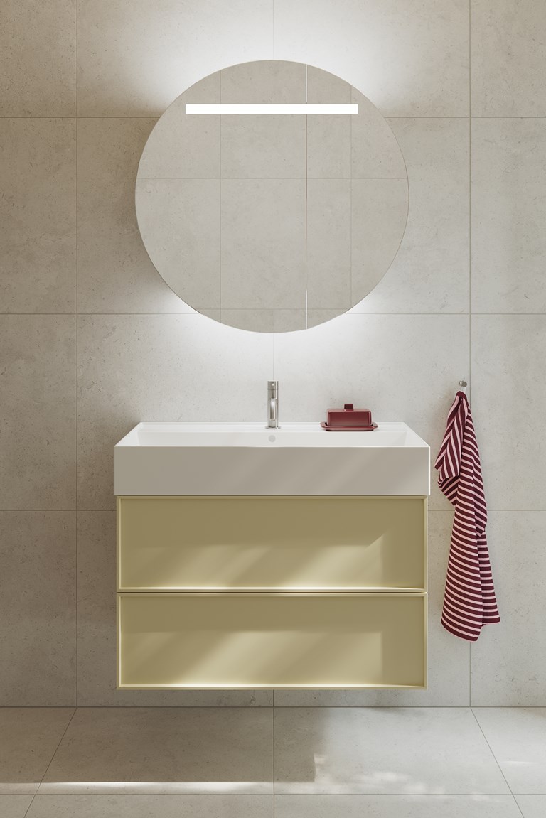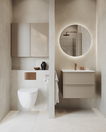 Tyylikäs allaskaluste, jossa sileä kehystetty etusarja luo ylellisen ja viimeistellyn ilmeen. Kehykseen upotettu huomaamaton vedin takaa vaivattoman ja sulavan käytön, säilyttäen samalla kalusteen minimalistisen ilmeen. Valitse modernia retrohenkeä henkivä tammiviilu tai oma suosikkisävysi NCS-värikartasta ja viimeistele kokonaisuus joko klassisella posliinialtaalla, mattapintaisella solid surface -pesualtaalla tai pöytätasolla yhdistettynä pesualtaaseen. Tilavat laatikot tarjoavat runsaasti säilytystilaa ja ovat varustettu soft-close-mekanismilla sekä liukumattomilla matoilla, jotka tekevät käytöstä miellyttävää ja sujuvaa. TX Top Extreme™ -pintakäsittely suojaa kosteudelta ja kulumiselta varmistaen, että kaluste säilyy kauniina ja kestävänä vuosien ajan. Viimeistele kokonaisuus älykkäillä lisävarusteilla, kuten liiketunnistimella ohjatulla valaistuksella ja integroidulla kaksoispistorasialla, jotka lisäävät sekä käytännöllisyyttä että arjen sujuvuutta.