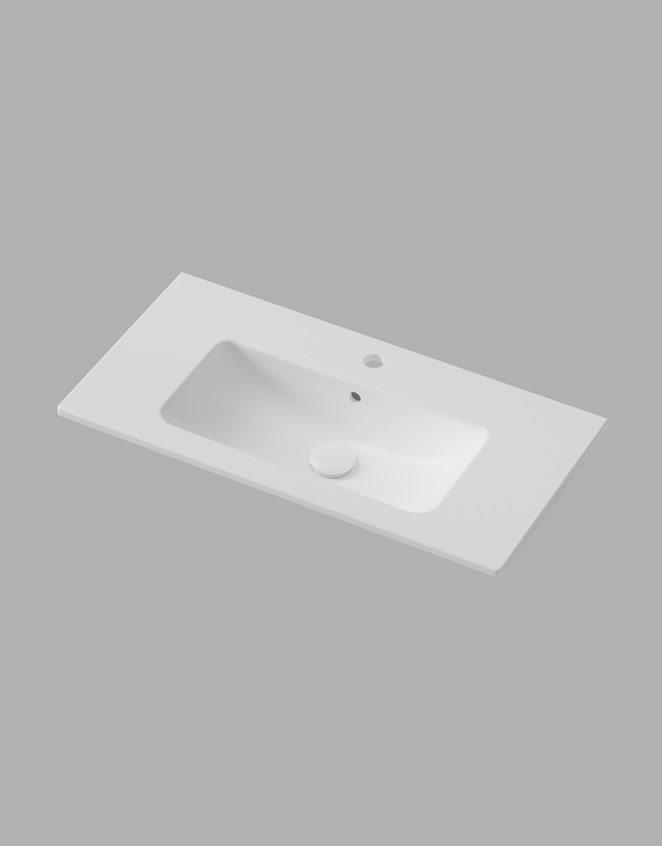 Leveä allaskaluste, jokan on syvyydeltään pienenpi, sileä etusarja ja pelkistetty muotokieli.