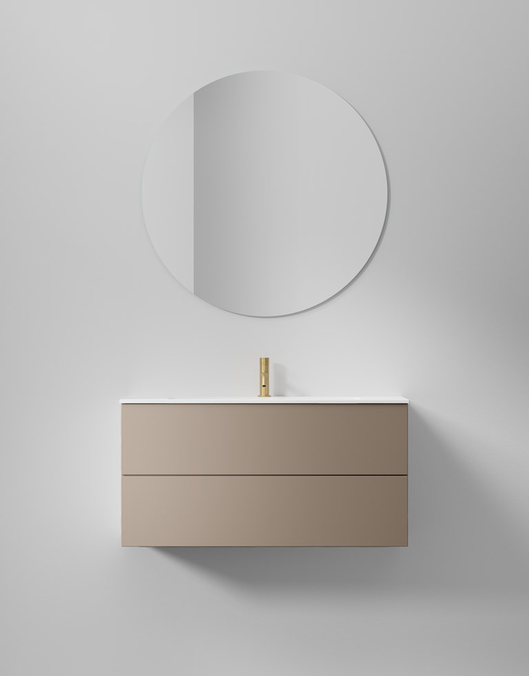 Viimeistelty ja tyylikäs allaskaluste, jossa kalusteen sävyyn sopiva vedin.