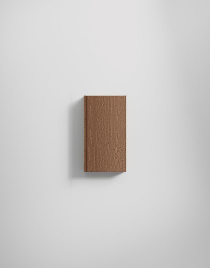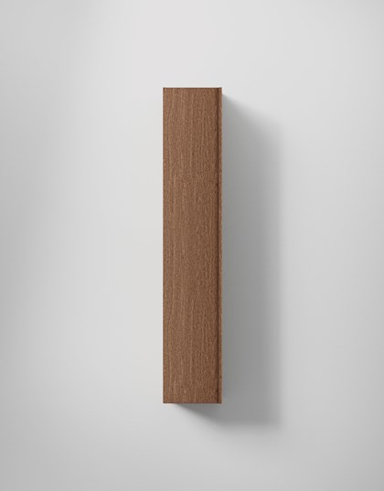 Käytännöllinen korkea kaappi, jossa massiivitammesta valmistettu yhtenäinen vedinura. Lämmin puutuntuma ja vahva ilme kompaktista koosta huolimatta.