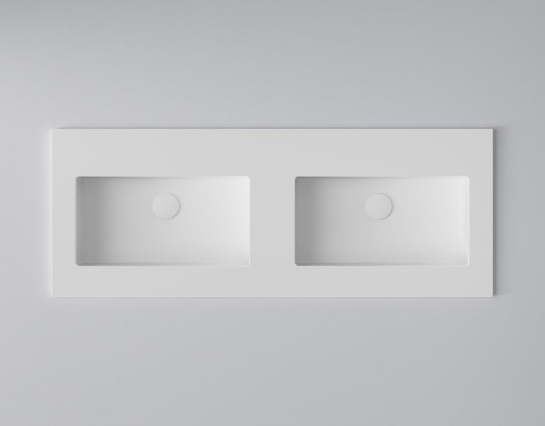 Tilava selkeälinjainen allaskaluste kahdella pesualtaalla.