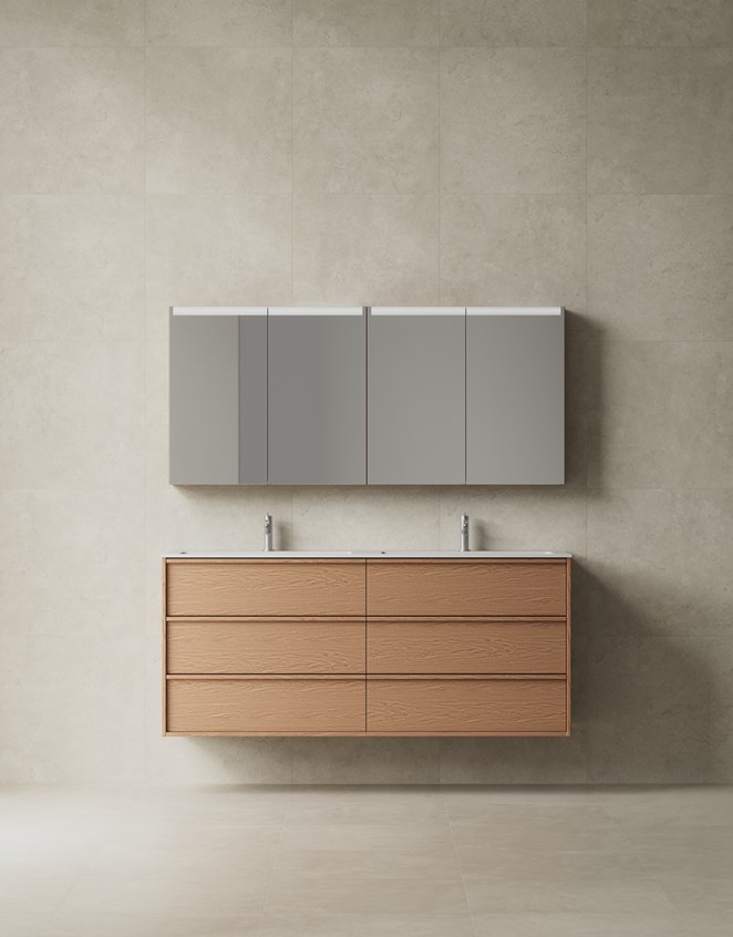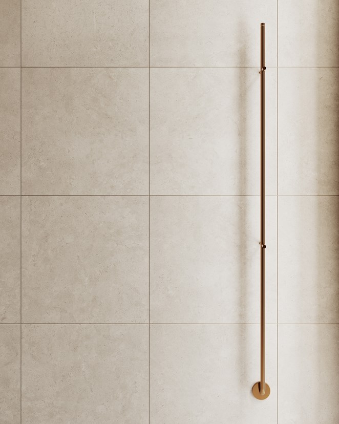 Stenvide Hay on vaaleanbeige graniittikeramiikkalaatta, jonka inspiraationa on gotlantilainen kalkkikivi. Hillitty kuvio kulkee pehmeästi läpi tilan ja antaa muiden materiaalien astua esiin. Sarja on saatavilla neljässä sävyssä ja viidessä koossa. Luonnolliset kuviovaihtelut tuovat pintaan eloa ja harmoniaa. Lasitettu, puolimatta ja kevyesti strukturoitu pinta tuntuu miellyttävältä jalan alla ja viimeistelee laatan rauhallisen ilmeen. Tarkasti leikatut reunat mahdollistavat vain 2 mm saumaleveyden – huoliteltua ja yhtenäistä lopputulosta varten. Graniittikeramiikka on kestävä, helppohoitoinen ja toimii erinomaisesti lattialämmityksen kanssa. Valinta, joka antaa sinulle vapauden luoda juuri oikea tunnelma kylpyhuoneeseen.