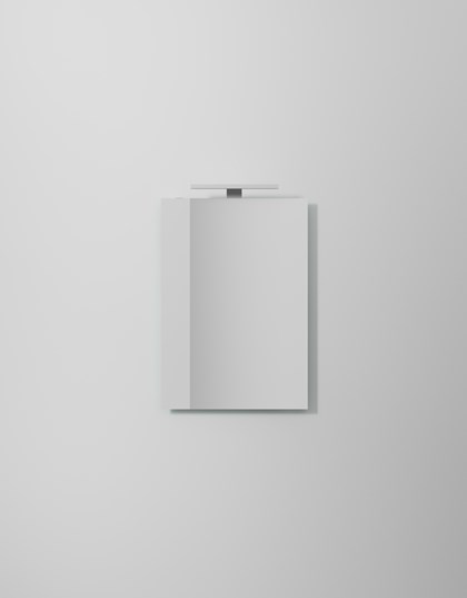 Hyvin varusteltu peilikaappi ylävalaistuksella, joka yhdistetään virtakytkimeen.