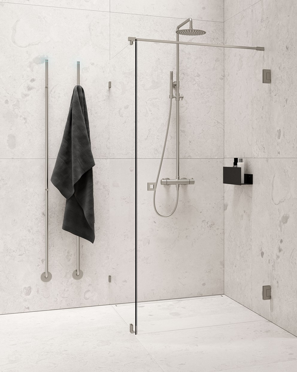 Hanat, kattosuihkut ja lisävarusteet, jotka ovat yhteensopivia suihkutilaratkaisujemme ja kalusteidemme kanssa