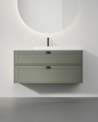 Tässä klassinen kehysovi saa modernin skandinaavisen ilmeen, kun etusarjat asettuvat kauniisti rungon sisään. Grand Classic mukautuu vaivattomasti omaan tyyliisi – valitse ajaton valkoinen yhdistettynä tyylikkäisiin kupuvetimiin ja kalkkikiveä muistuttavaan pöytätasoon tai luo rohkeampi ilme tummalla NCS-sävyllä, jonka voit valita itse, yhdessä mustan tai harmaan pesualtaan ja pöytätason kanssa. Tutustu eri vaihtoehtoihin studiossamme ja suunnittele kaluste, joka sopii täydellisesti juuri sinulle. Kaikki allaskalusteet