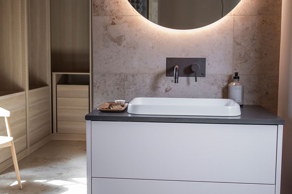 Tässä Meidän kotona – artikkelissa pääset tutustumaan Pauliinan ja Jukan harmoniseen kotiin, jonka kylpyhuoneet luovat asumistiloista funktionaalisen ja kauniin kokonaisuuden.