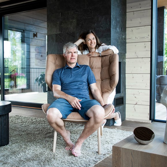 Lohjan asuntomessuille kohonneessa modernissa hirsitalossa yhdistyy aktiivisen perheen yhteiset intohimot; purjehdus, alppihiihto ja Suomen kaunis luonto. Haaveena oli rakentaa talo, jossa tuntuisi kuin olisi lomalla!
