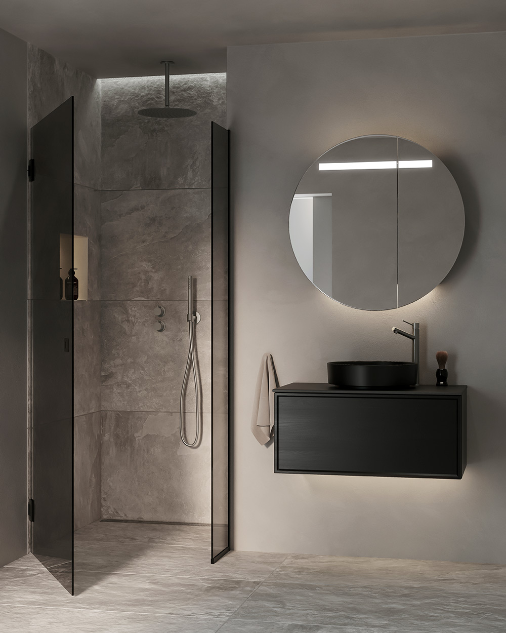 Valkoisen kylpyhuoneen jatkuvan suosion vastapainoksi mustat kylpyhuoneet ovat yleistymässä, ja yhä useammat hakevat inspiraatiota mustilla yksityiskohdilla sisustamiseen. Mustat elementit, kuten suihkuseinät, hanat, pyyhekuivaimet ja kylpyhuonekaapit, ovat erityisen suosittuja. Kun suunnittelet mustilla yksityiskohdilla sisustetun kylpyhuoneen, on tärkeää kiinnittää erityistä huomiota valaistukseen. Laadukkaat viimeistelyt ja metalliset yksityiskohdat hanoissa ja suihkuseinissä voivat nostaa mustan kylpyhuoneen ilmeen uudelle tasolle..