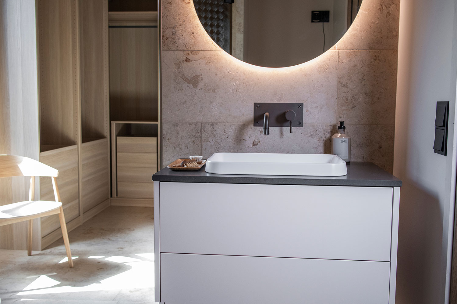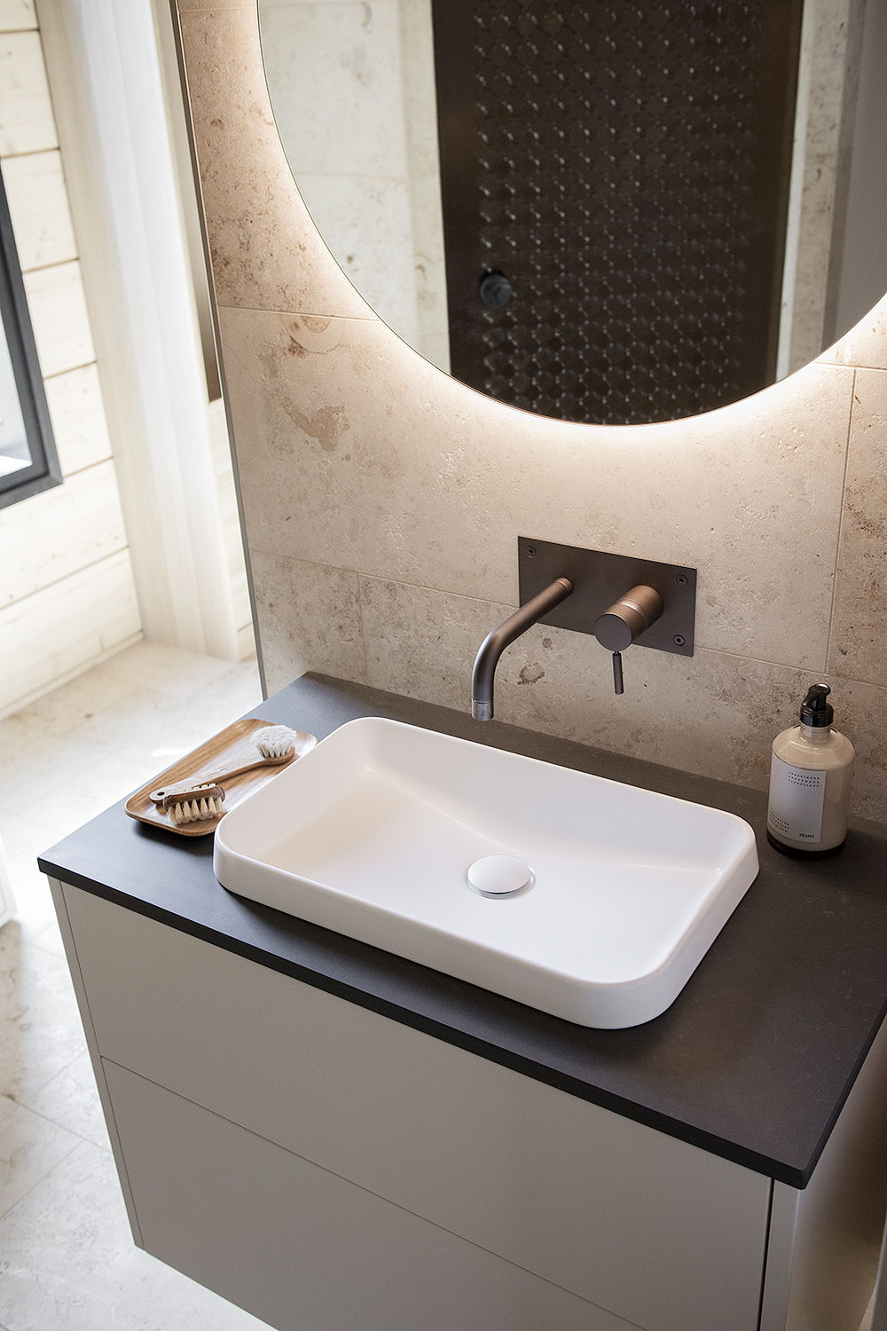 Tässä Meidän kotona – artikkelissa pääset tutustumaan Pauliinan ja Jukan harmoniseen kotiin, jonka kylpyhuoneet luovat asumistiloista funktionaalisen ja kauniin kokonaisuuden.