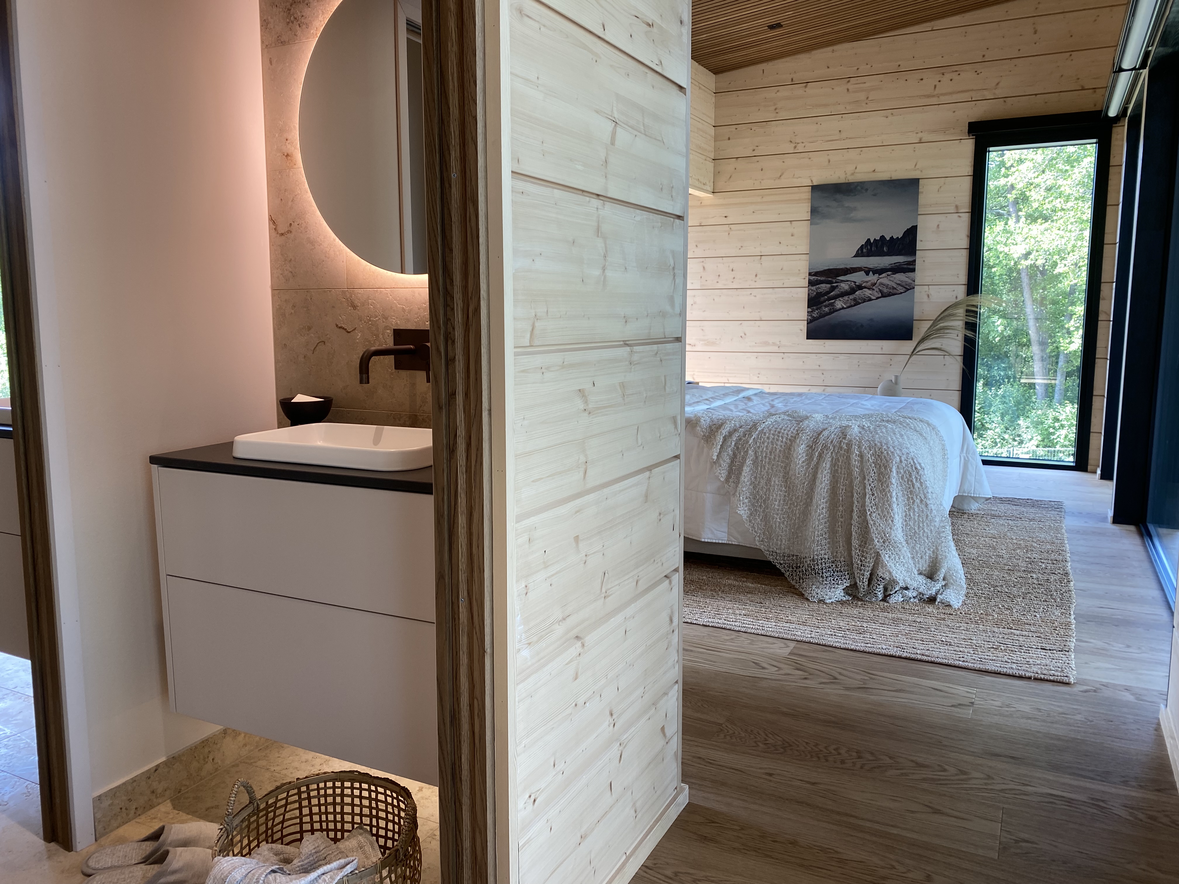 Lohjan asuntomessuille kohonneessa modernissa hirsitalossa yhdistyy aktiivisen perheen yhteiset intohimot; purjehdus, alppihiihto ja Suomen kaunis luonto. Haaveena oli rakentaa talo, jossa tuntuisi kuin olisi lomalla!