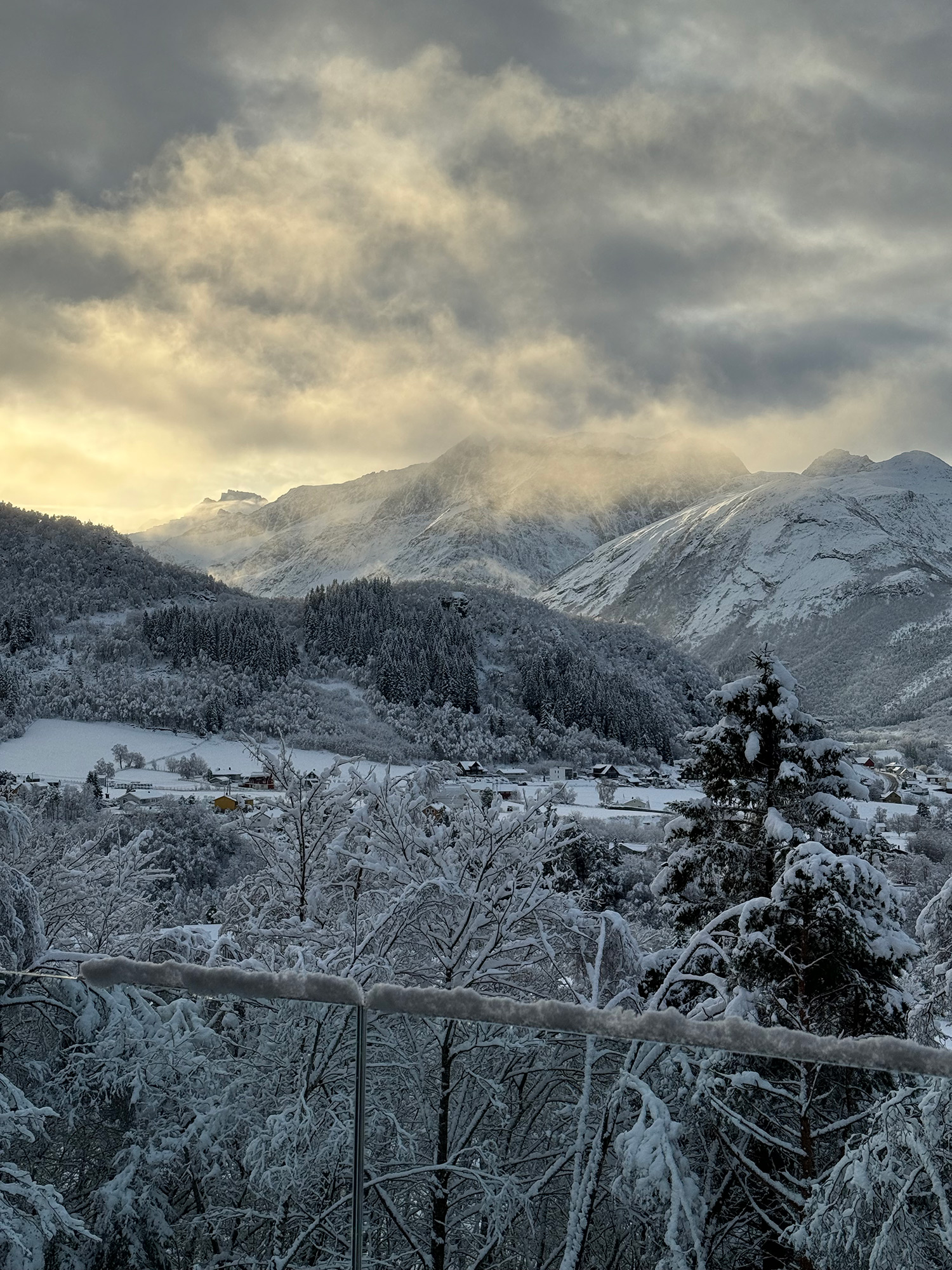 Kylpyhuone Sunnmören alppien vuonomaisemassa