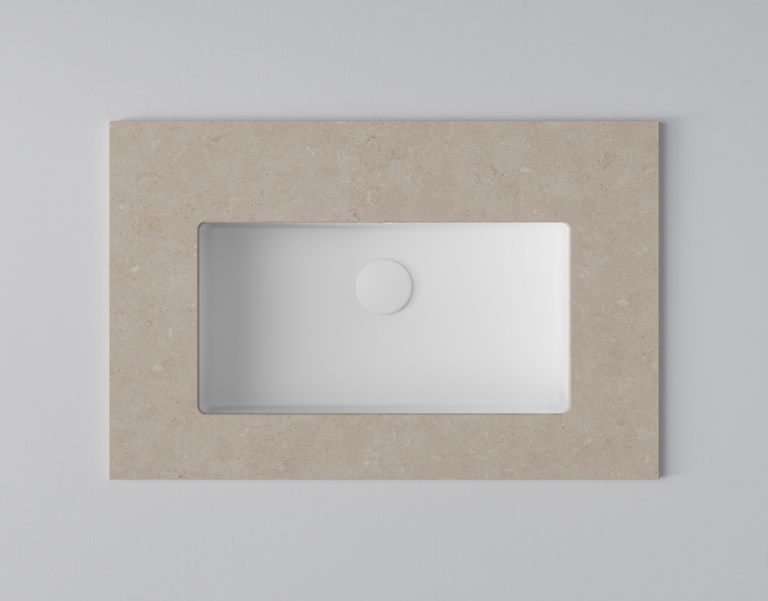 Tyylikäs allaskaluste, jossa kehyksen sisään huomaamattomasti integroitu vedin.