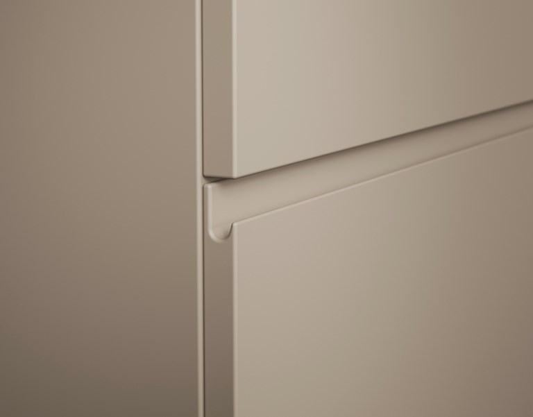 Syvyydeltään pienempi korkea kaappi, upotetulla vetimellä antaa tyylikkään vaikutelman.