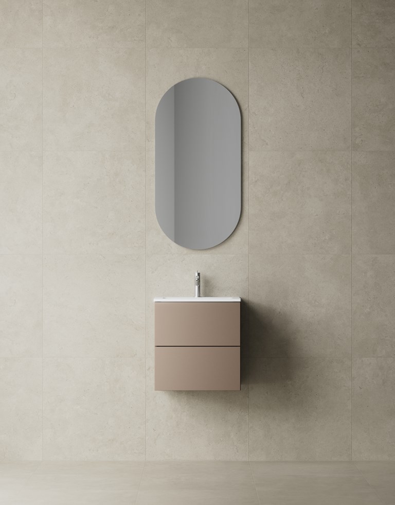 Tyylikäs muotokieli sileällä etusarjalla, käytännöllinen allaskaappi pieneen tilaan.