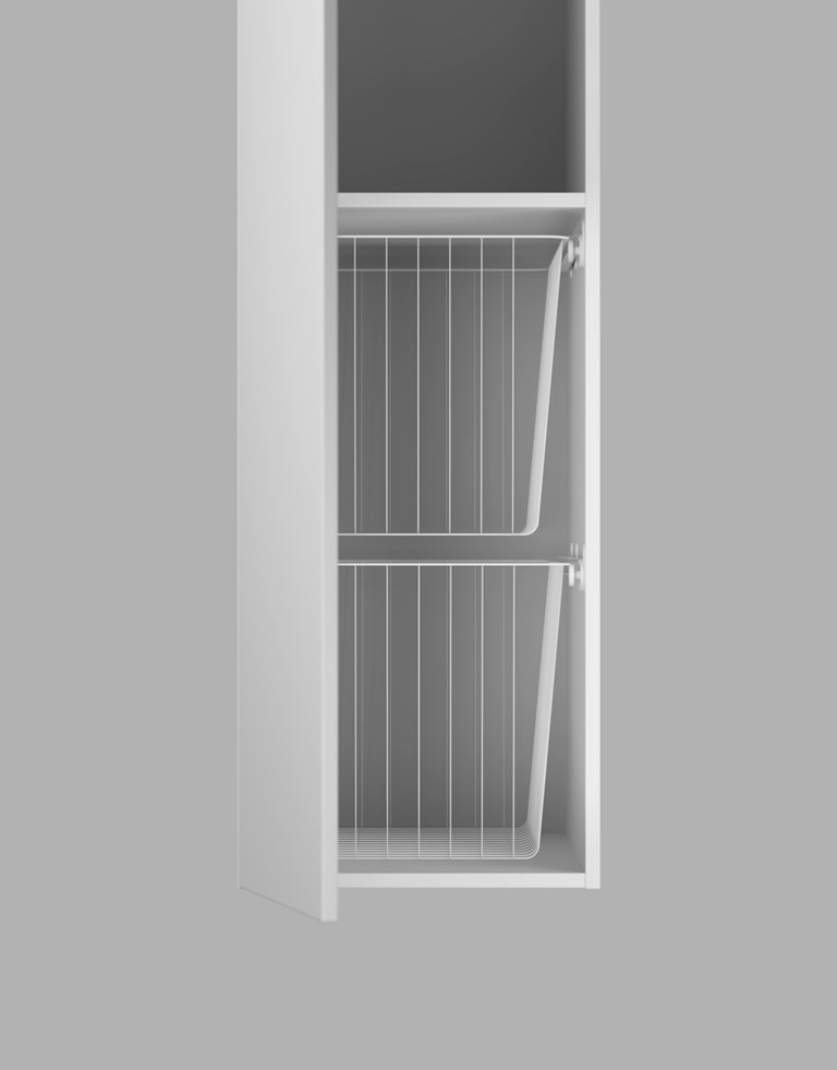 Stow on vankka ja käytännöllinen pyykkikaappi, joka on suunniteltu täyttämään nykyaikaisten kylpyhuoneiden vaativat tarpeet. Kaappi tarjoaa harkittua säilytystilaa kahdella hyllytasolla, joista toinen on siirrettävä, sekä kahdella ilmavalla lankakorilla, jotka helpottavat pyykin lajittelua ja järjestyksen ylläpitoa.  Kaapissa on runsaasti tilaa kaikelle, mitä tarvitset kylpyhuoneessa ja kodinhoitohuoneessa. Saatavilla myös leveämpi, matalampi malli. Vetimet myydään erikseen, mikä antaa mahdollisuuden räätälöidä ulkoasu ja käyttömukavuus oman maun mukaan.