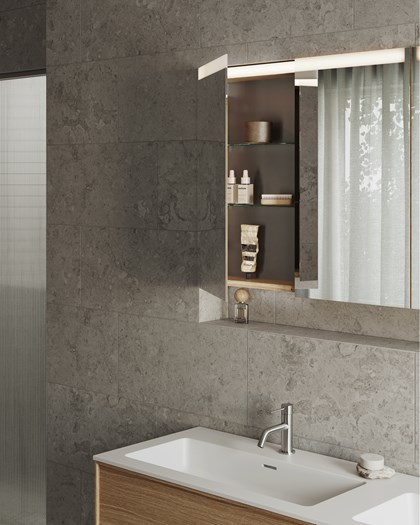 Käytä rauhassa aikaa, kun tutustut peileihimme ja peilikaappeihimme. Oikea peili viimeistelee kylpyhuoneen tyylin ja tuo tilaan valoa, syvyyttä ja avaruutta. Lisää tunnelmaa käytännöllisellä ja tyylikkäällä LED-valaistuksella. Peilimme ja peilikaappimme on mitoitettu sopimaan täydellisesti kaikkiin allaskalusteisiimme. Valittavanasi on sekä pyöreitä että neliskulmaisia malleja, joissa on runsaasti käytännöllisiä ja kiinnostavia lisävarusteita piilotettuna ovien taakse.