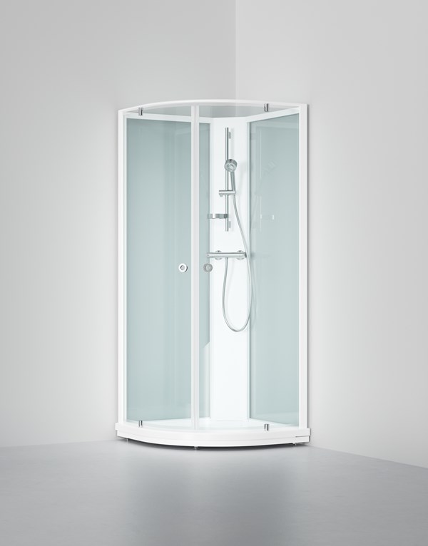 Tyylikäs pivot-saranallinen seinäkaappi suihkutuotteita varten. Kaappi on valmistettu alumiinista, joten se on sekä kestävä että helppo puhdistaa.
