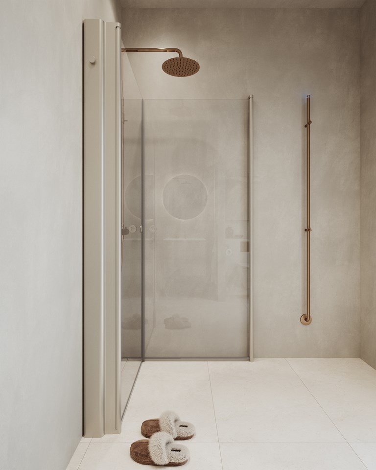 Suihkunurkka, jossa kaksi suoraa saranoitua ovea 6 mm lasista. Saatavana kiinteinä vakiomittoina, joita voit yhdistellä vapaasti sekä myös mittojen mukaan räätälöitynä. Täydennä Pile-suihkutilan säilytysratkaisulla.